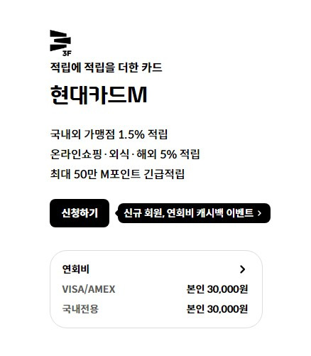 현대카드 M은 합리적인 연회비와 발급 조건을 통해 누구나 쉽게 사용할 수 있도록 설계되었습니다.