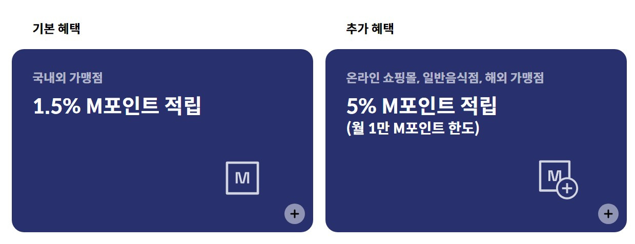1. 국내외 모든 가맹점에서 1.5% M포인트 적립
