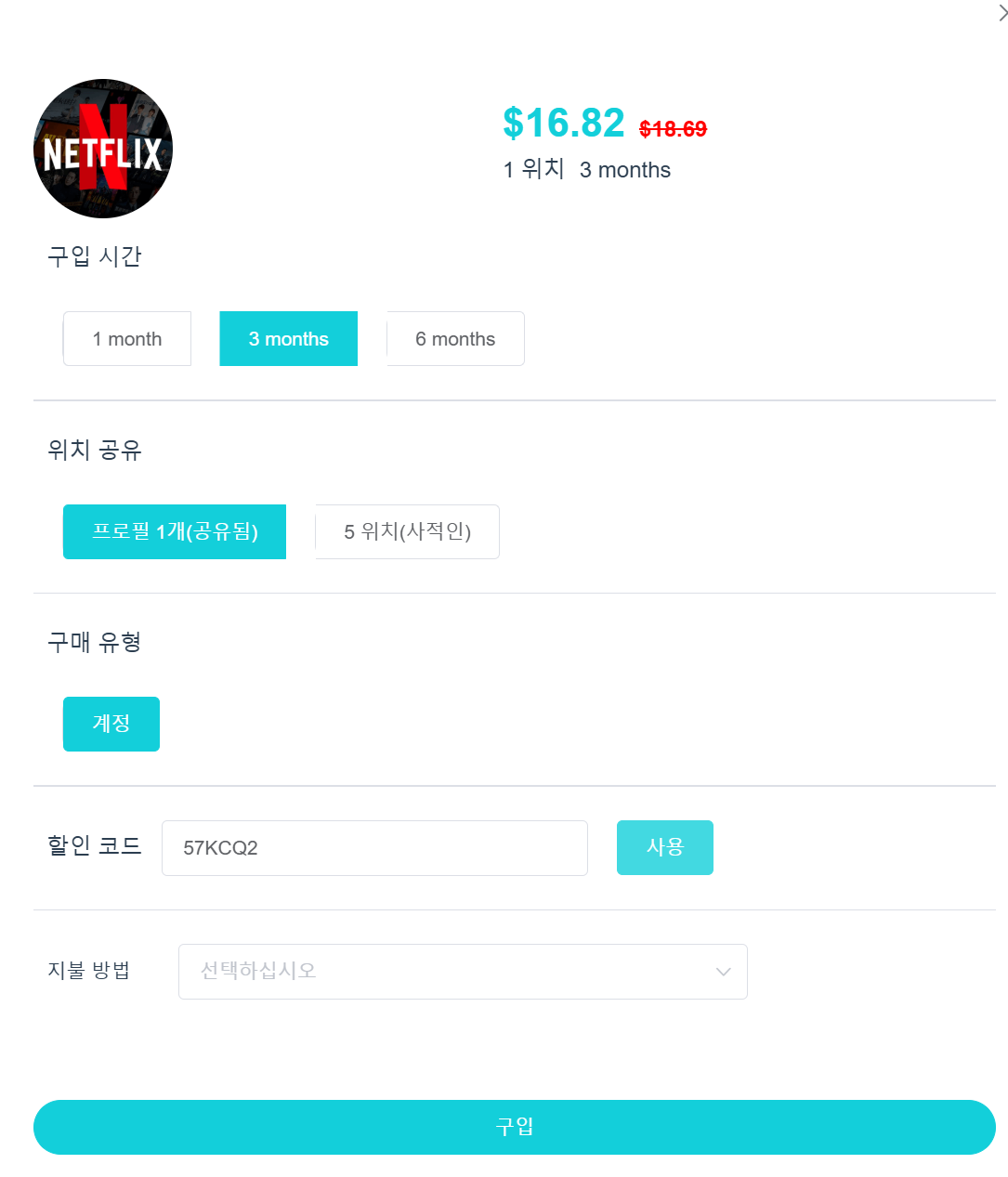 • 1개월 요금: $6.69 → 할인코드 적용 후 $6.02