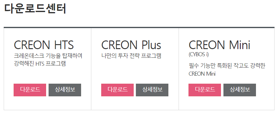 대신증권 크레온HTS 다운로드 설치 안내 바로가기