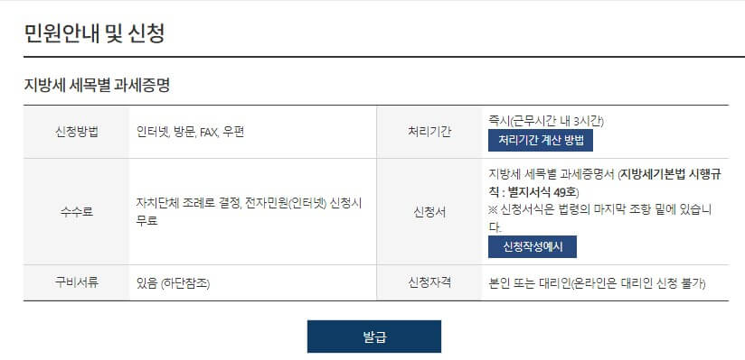 과세 자치단체 주소, 과세 년도, 사용 목적 등을 정확히 입력합니다.