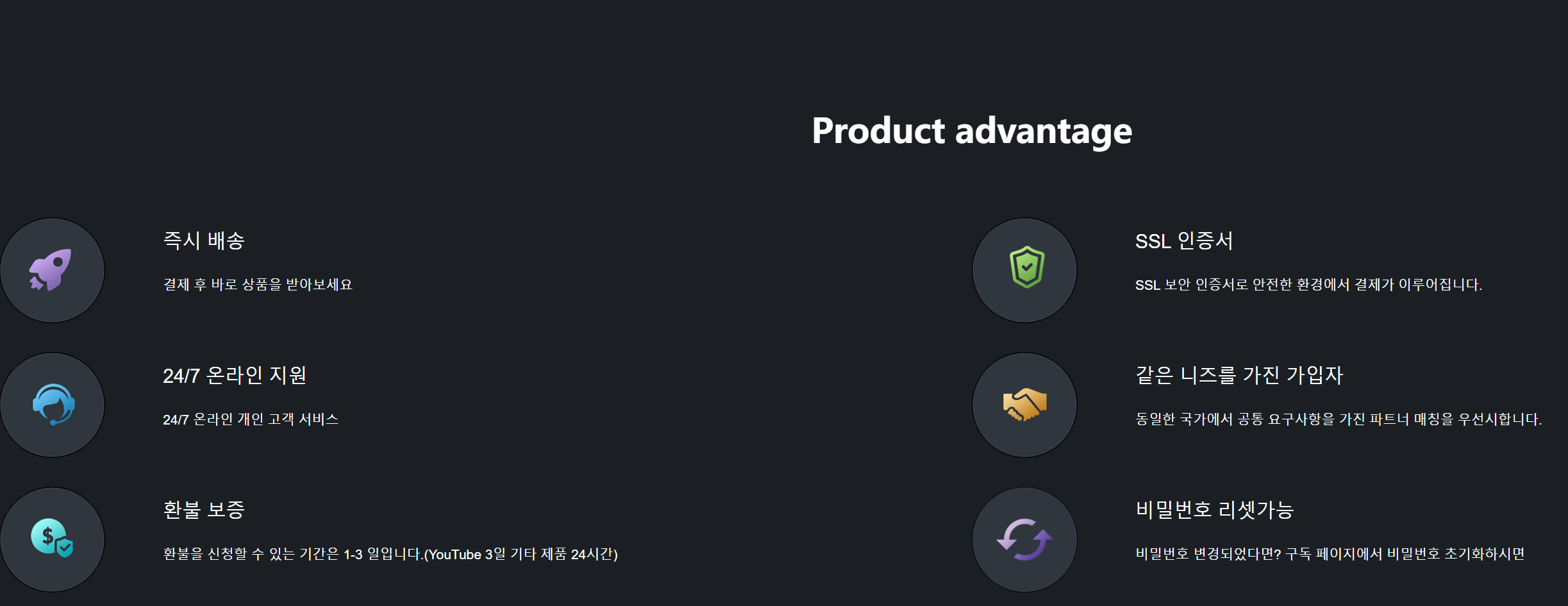 • 애프터 서비스 지원과 환불 정책을 제공하여 안전하게 이용할 수 있습니다.