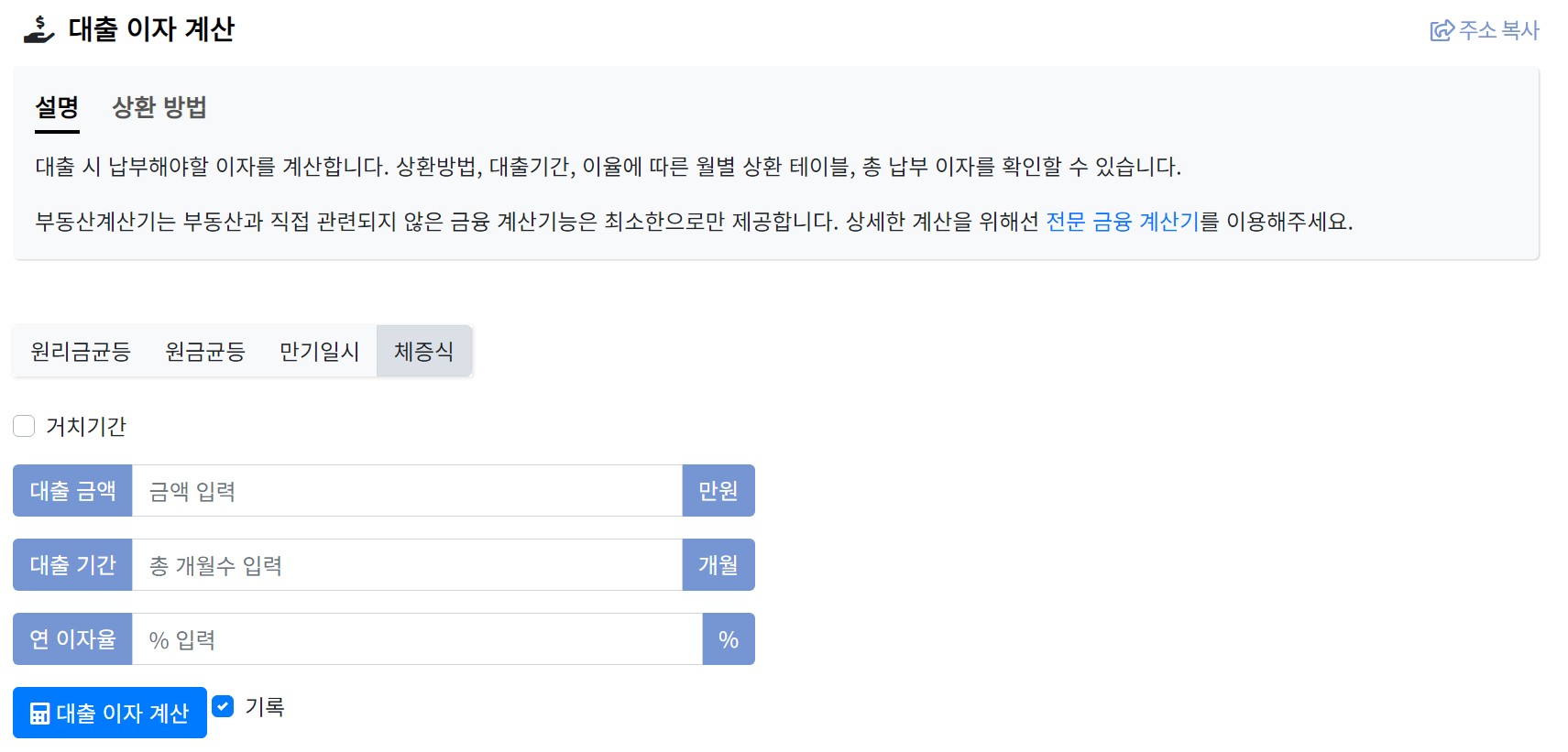 - 계산 결과 확인: 입력한 정보를 바탕으로 계산기가 매달 상환금액과 총 상환금액을 계산하여 보여줍니다.