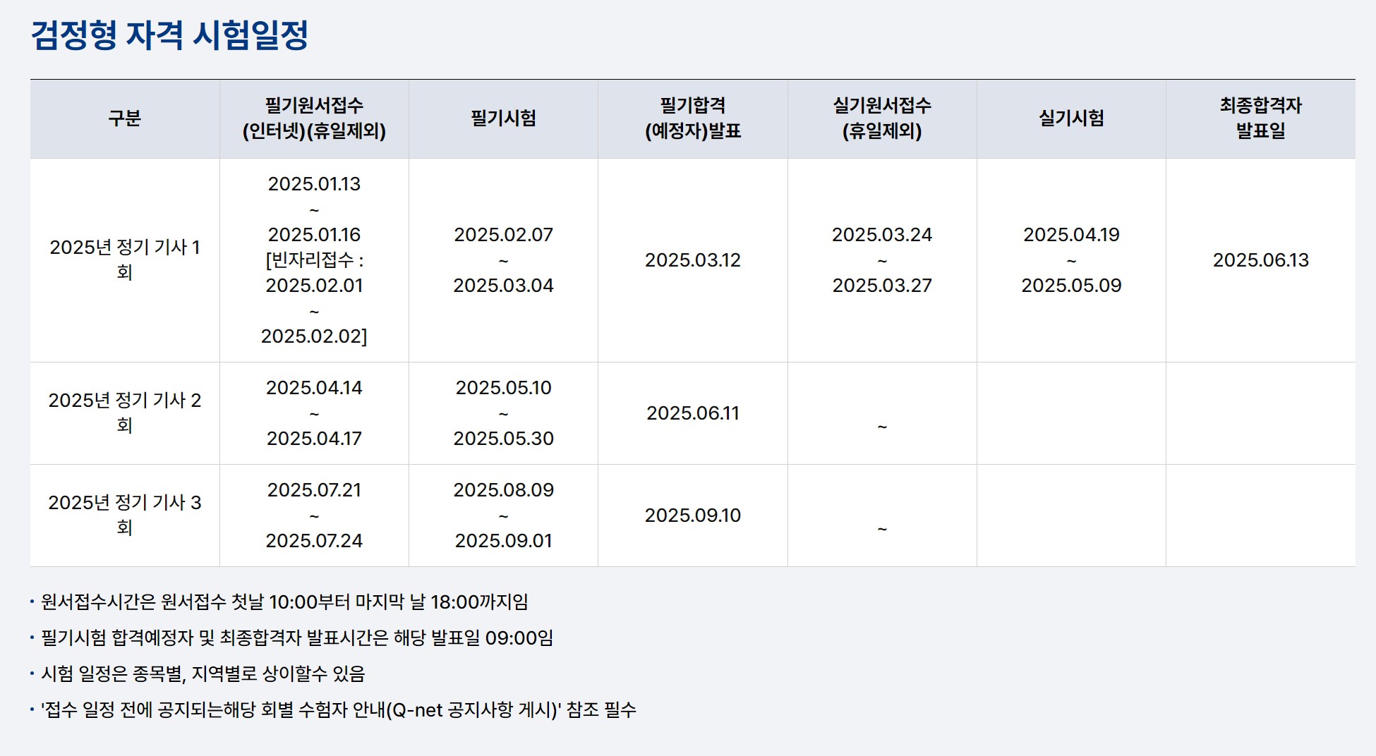 - 시험 지역: 종목별, 지역별 시험 일정이 다를 수 있으니, 반드시 Q-Net 공지사항을 확인하세요.
