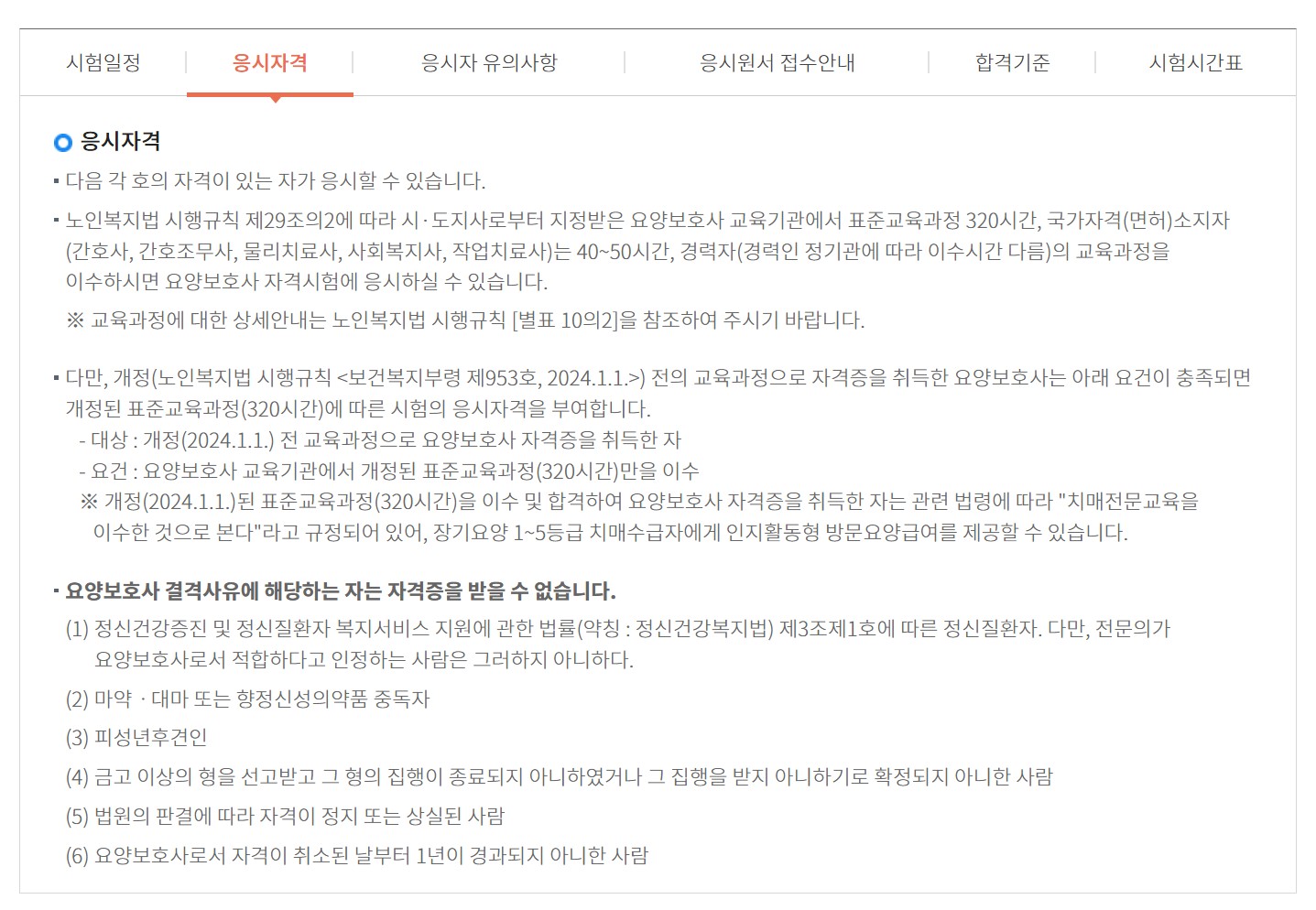 - 내용: 요양보호 관련 법규, 요양보호 개론, 요양보호 실무