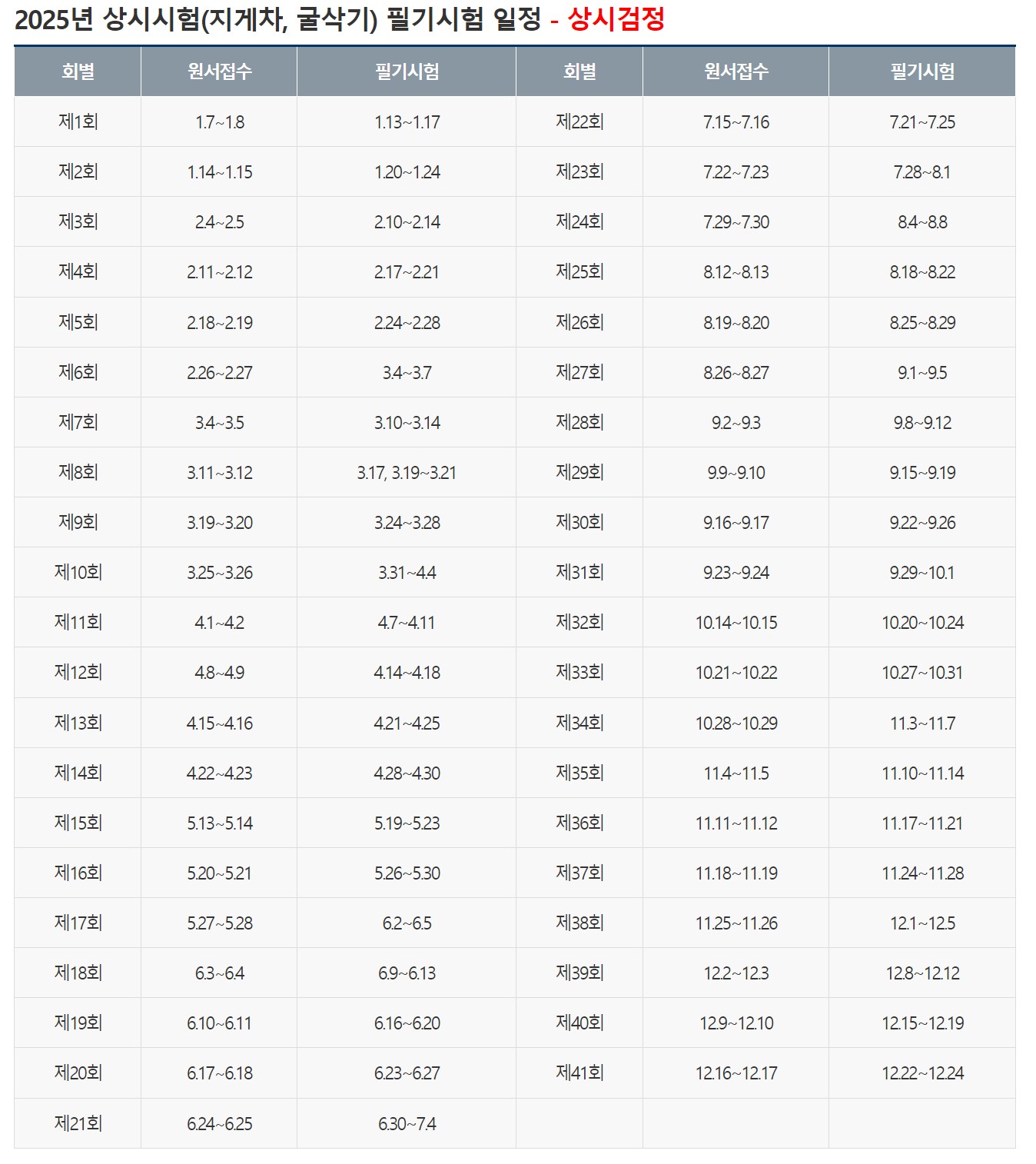 📅 필기시험 일정표 (회차별 주요 일정)