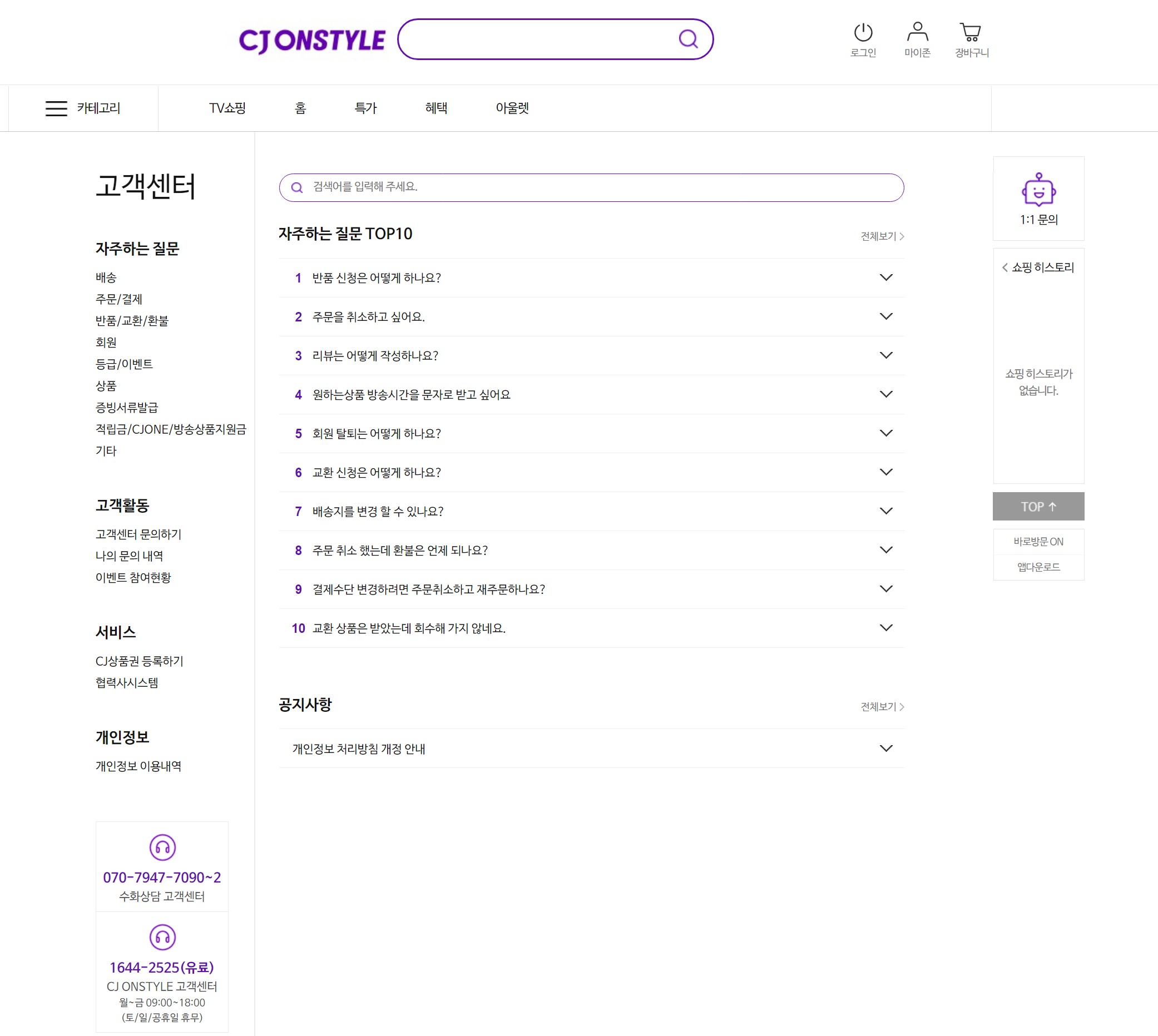 CJ온스타일 고객센터 전화번호 확인방법 (CJ홈쇼핑)